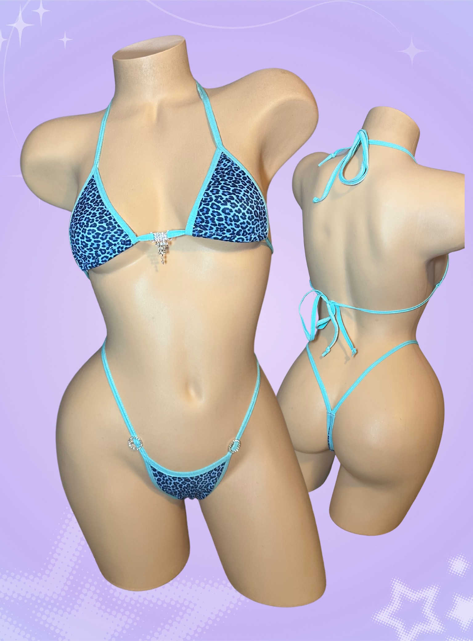 blue cheetah print 2 piece thong bikini l