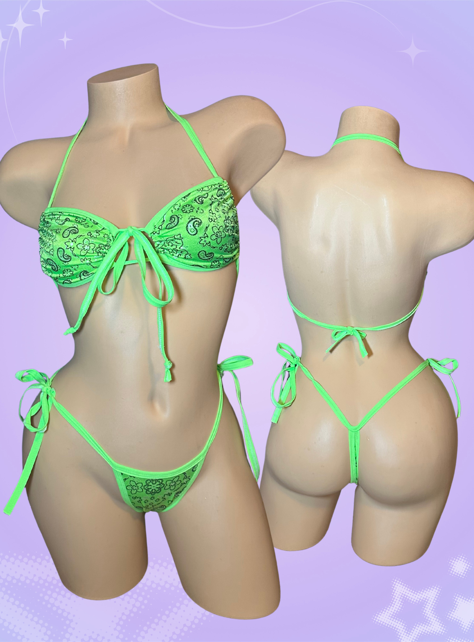 paisley bikini in green. The top can be tied in many different ways!