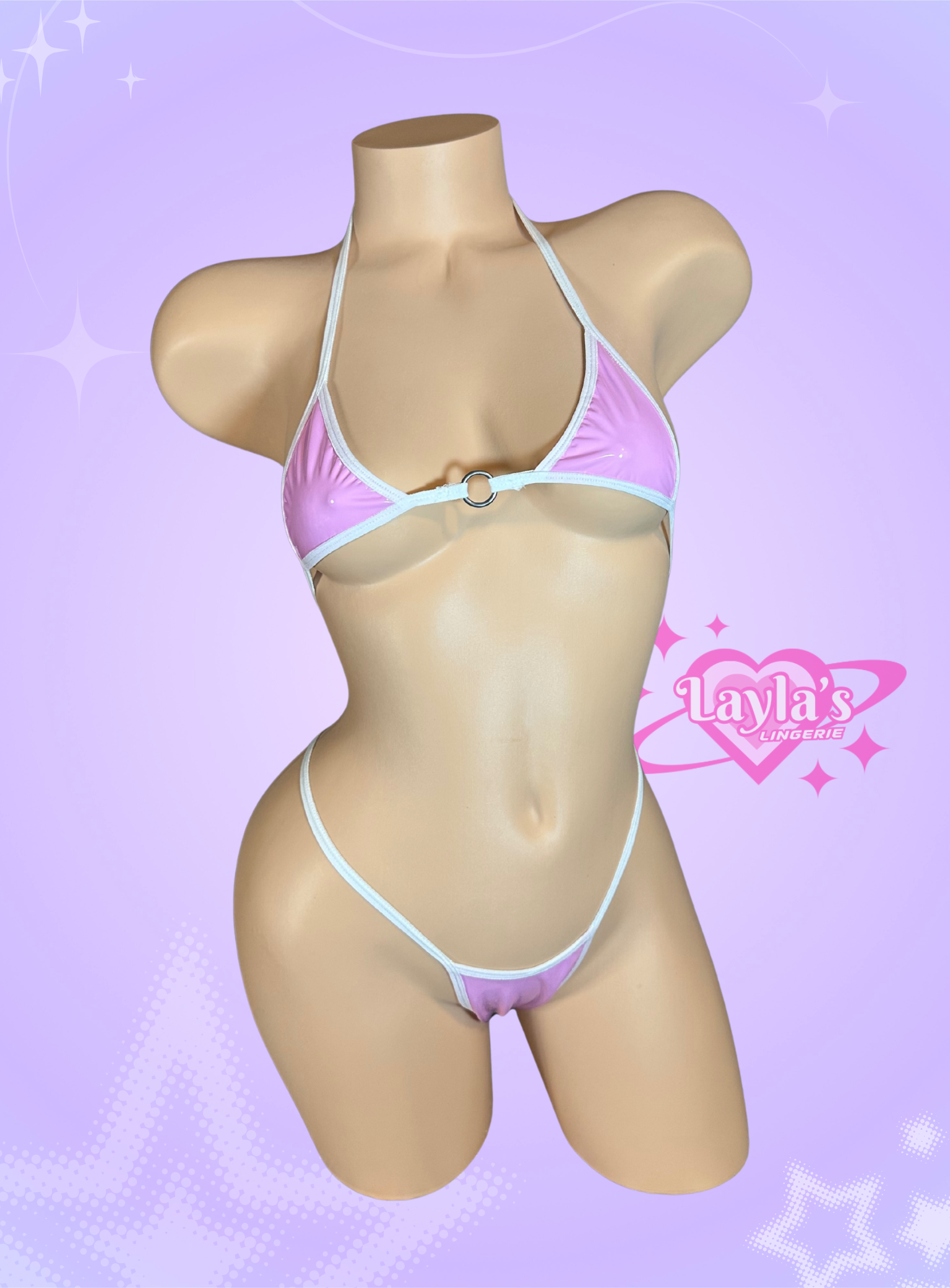 Pink and White Faux Latex bikini