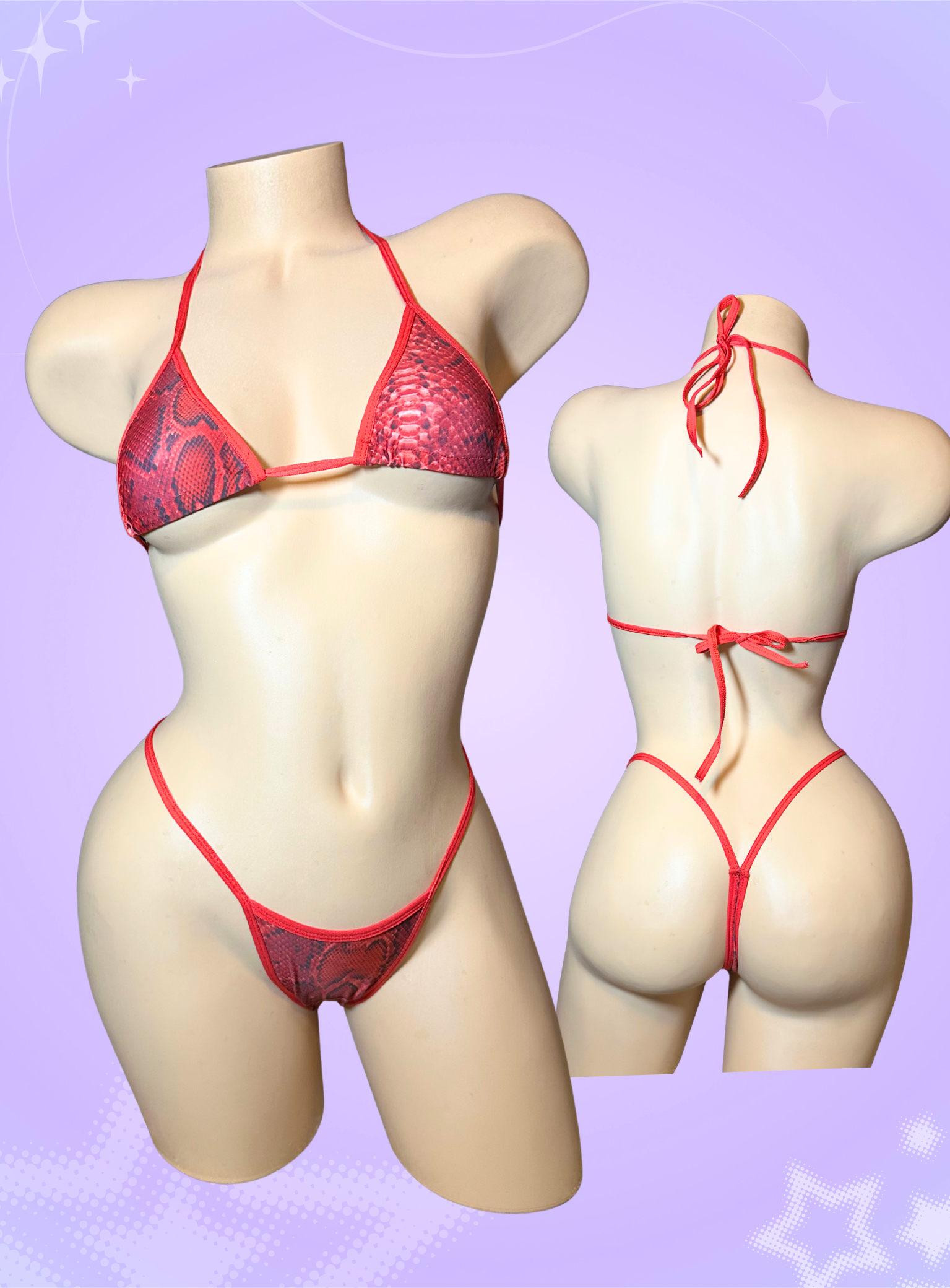 2 Piece triangle top and thong bottoms. Due to the nature of the fabric you may get a different part of the pattern❤️