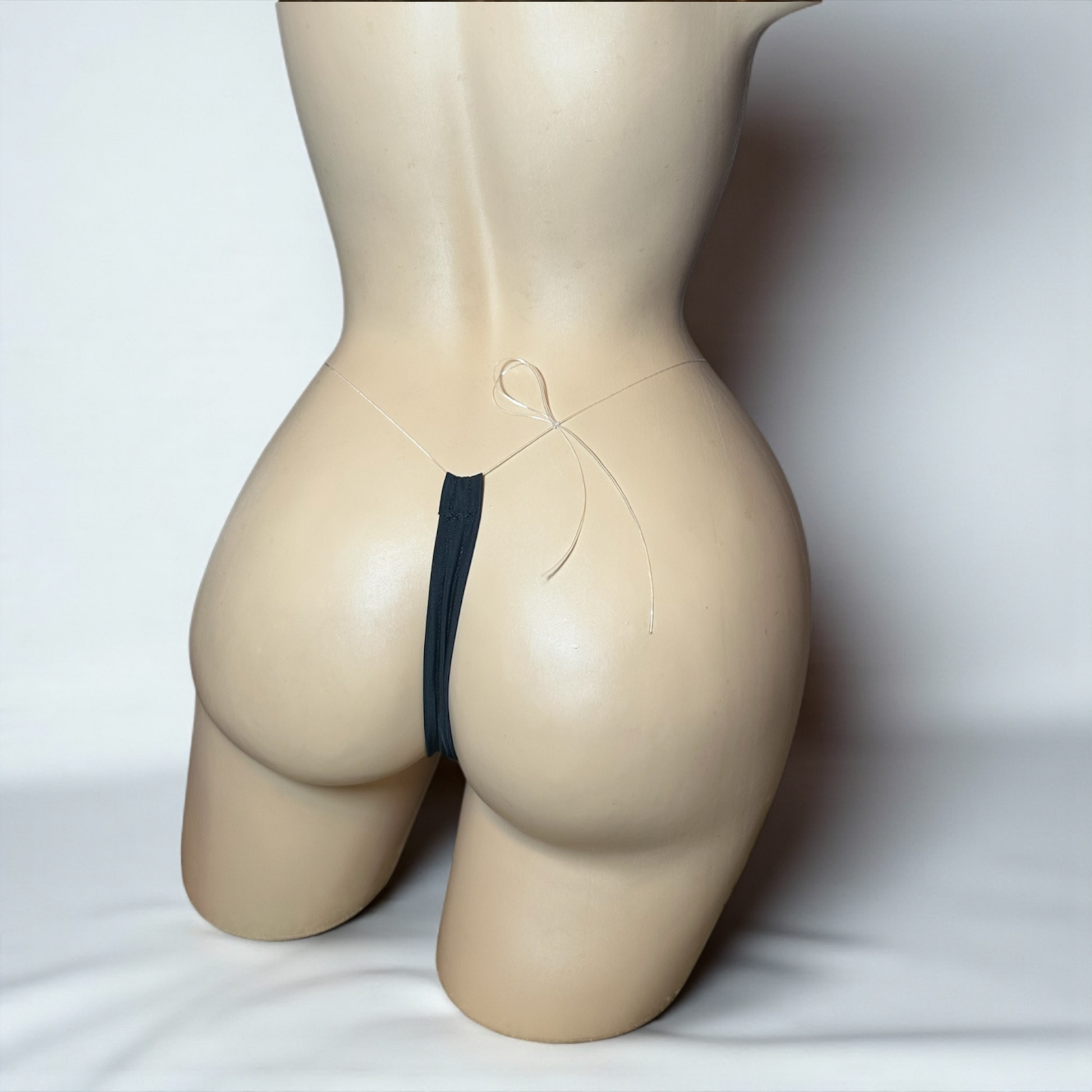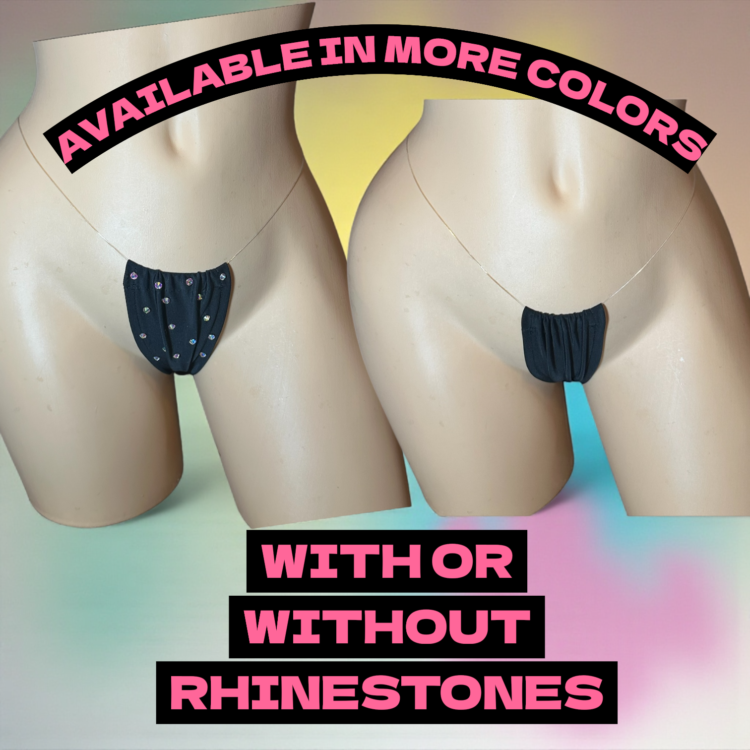 Solid color thong with 1mm clear elastic strings, with your choice of coming with or without rhinestones.