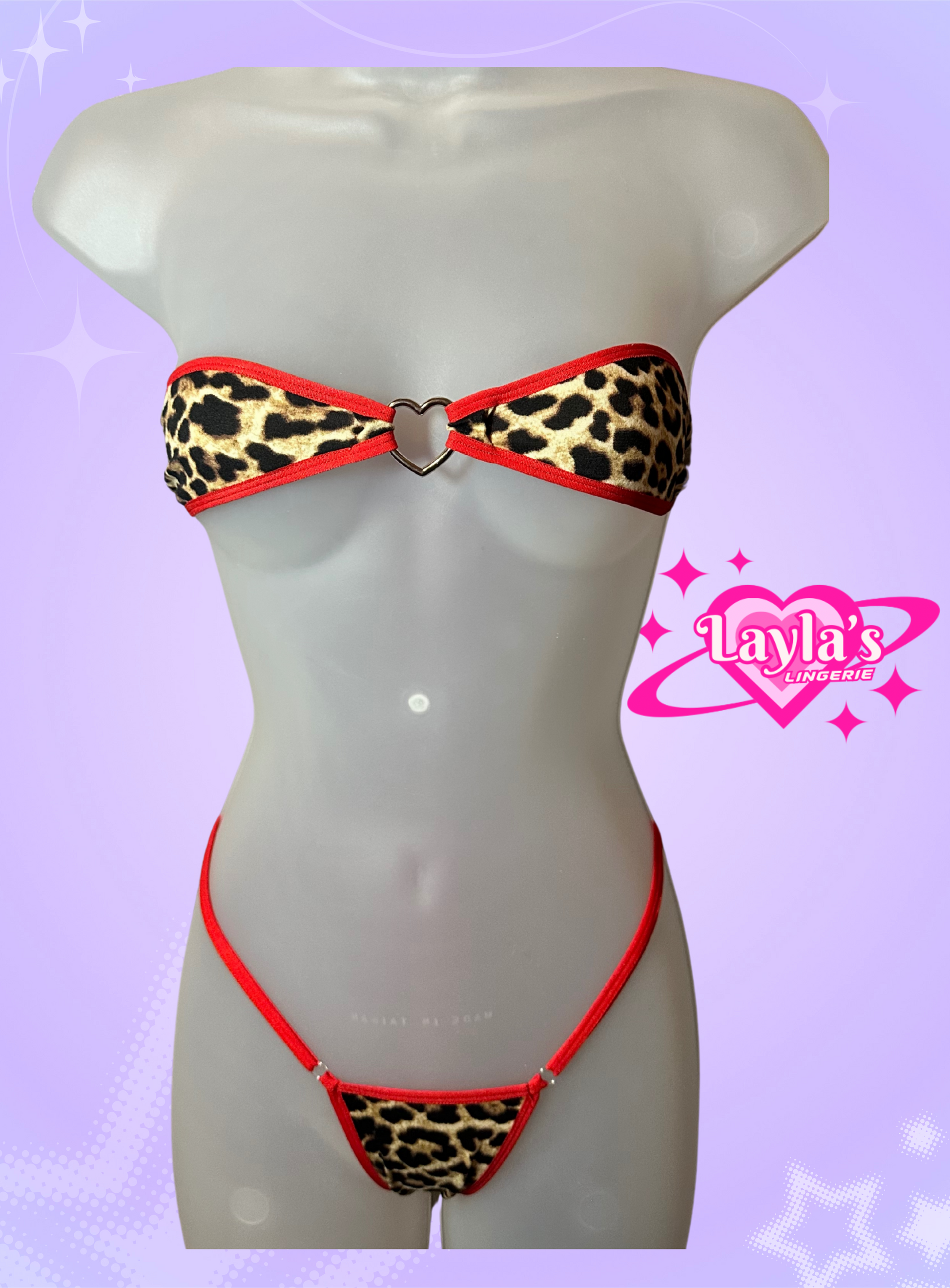 The Gianna Bikini, Cheetah and Red with Heart Ring