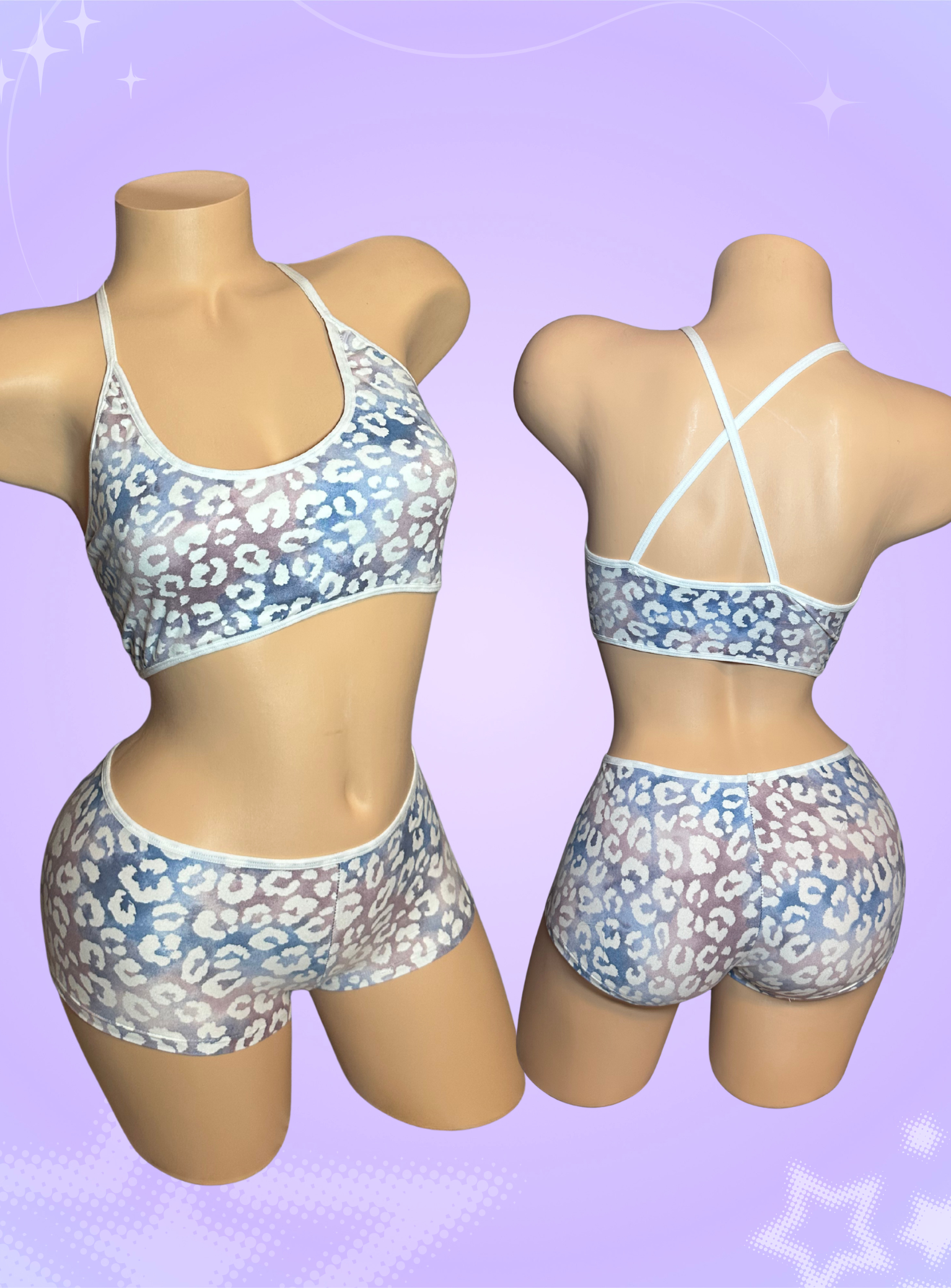 Tye dye blue and white cheetah pole dance outfit