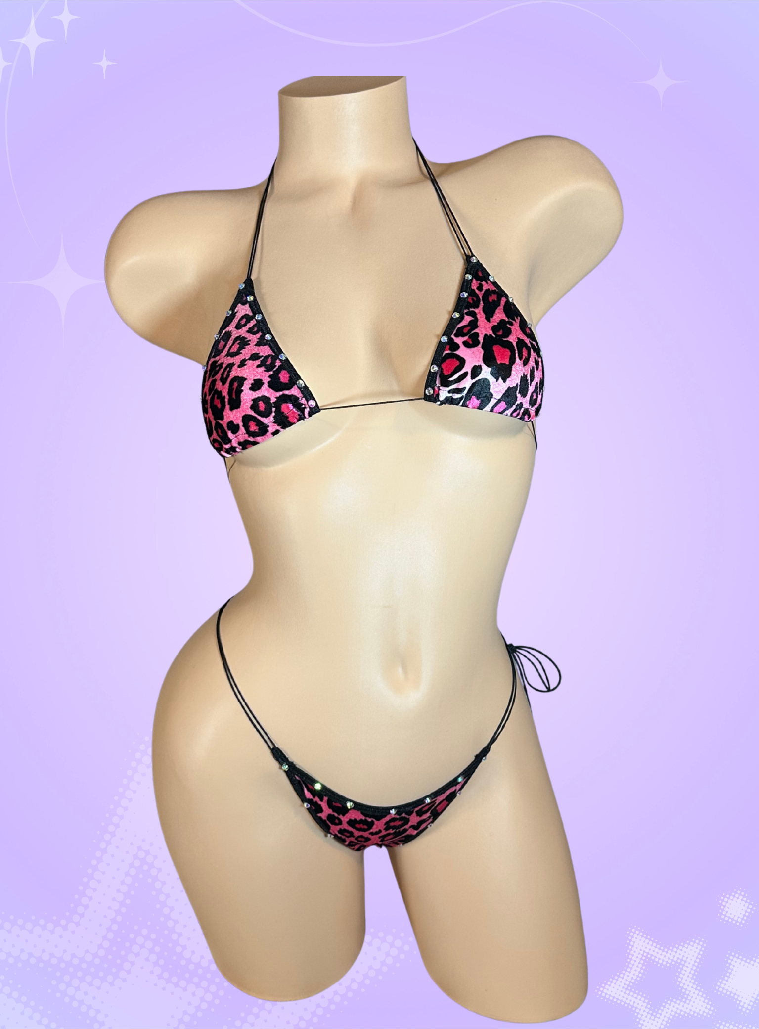 Pink and black velvet leopard/cheetah print microkini with gems on the edges. Not intended to be used as swimwear ❤️